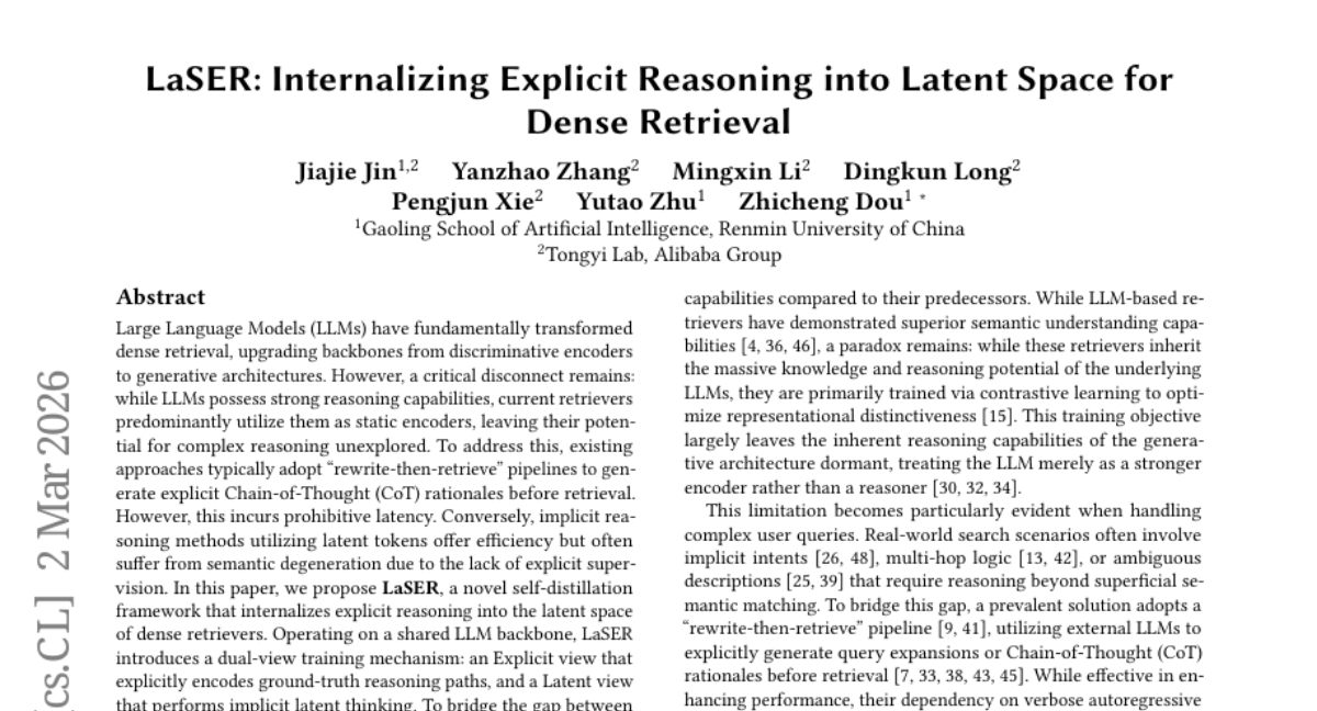 LaSER: Internalizing Explicit Reasoning into Latent Space for Dense Retrieval