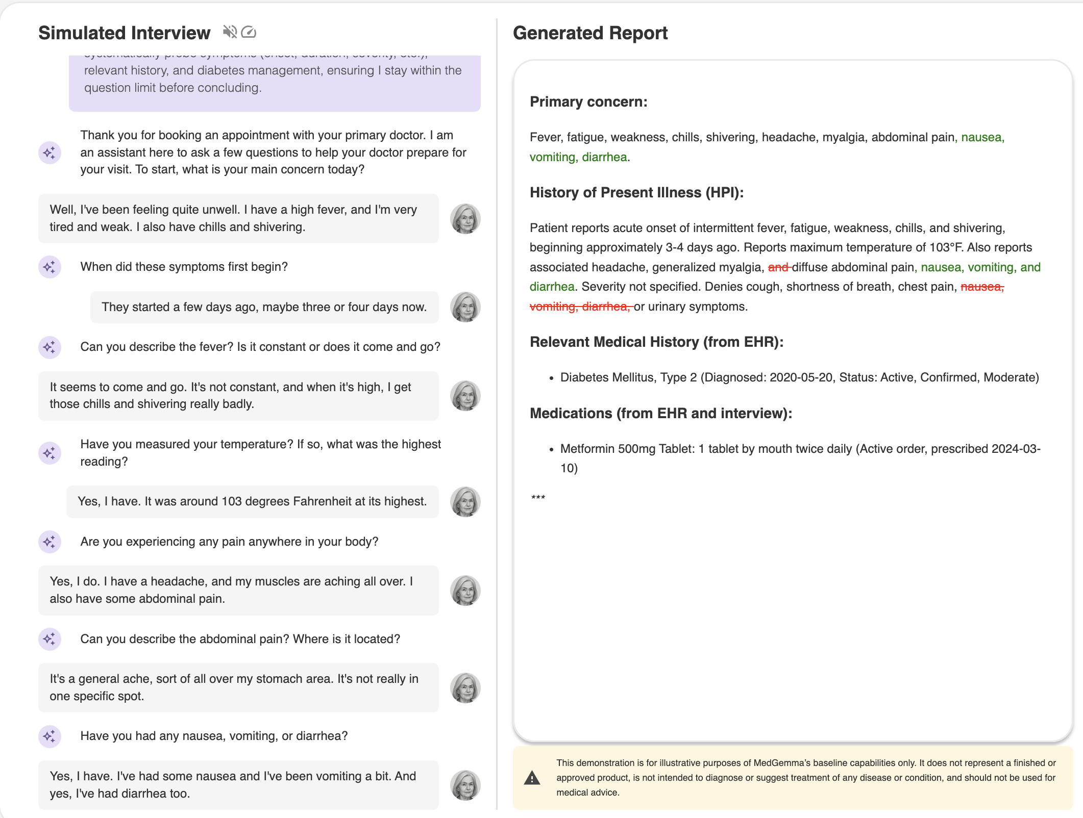 Simulated Pre-visit Intake Demo built using MedGemma