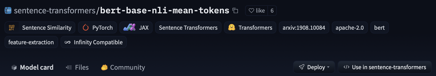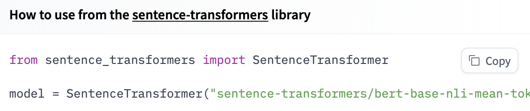 print("Similarity:", util.dot_score(query_embedding, passage_embedding))If you want to see how to load a specific model, you can click Use in sentence-transformers and you will be given a working snippet that you can load it!