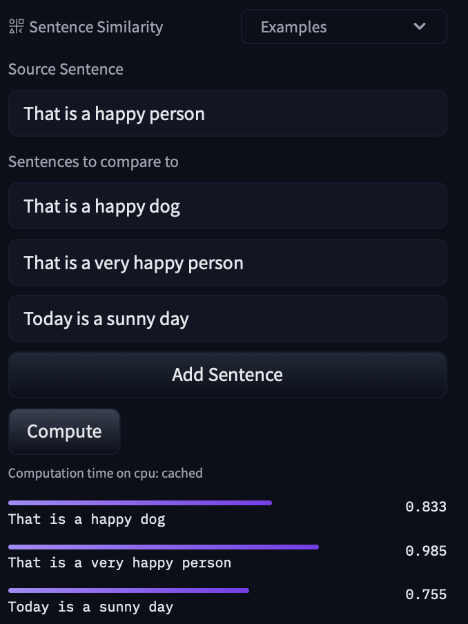 model = SentenceTransformer('model_name')Here is an example that encodes sentences and then computes the distance between them for doing semantic search.
