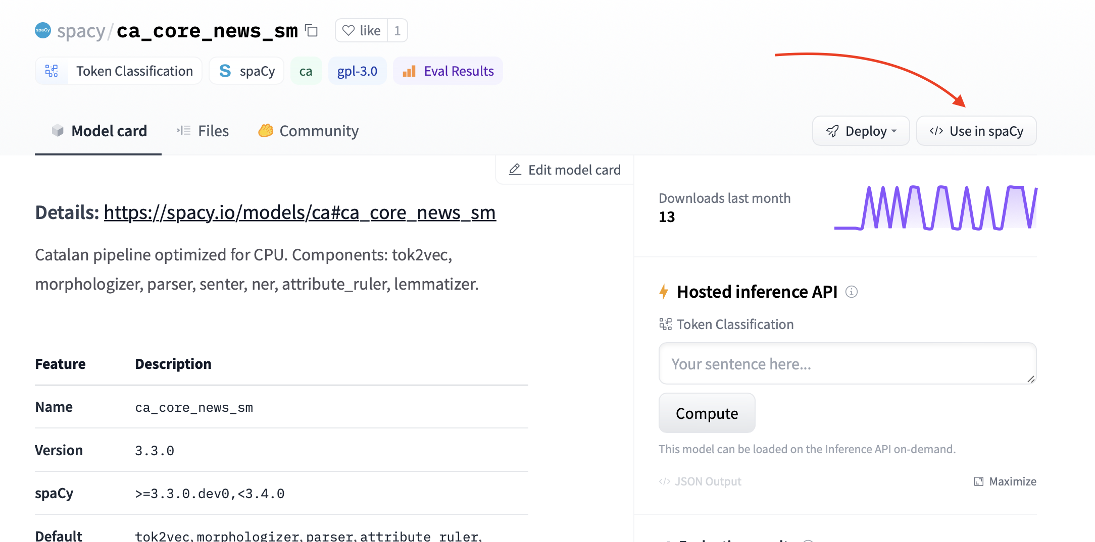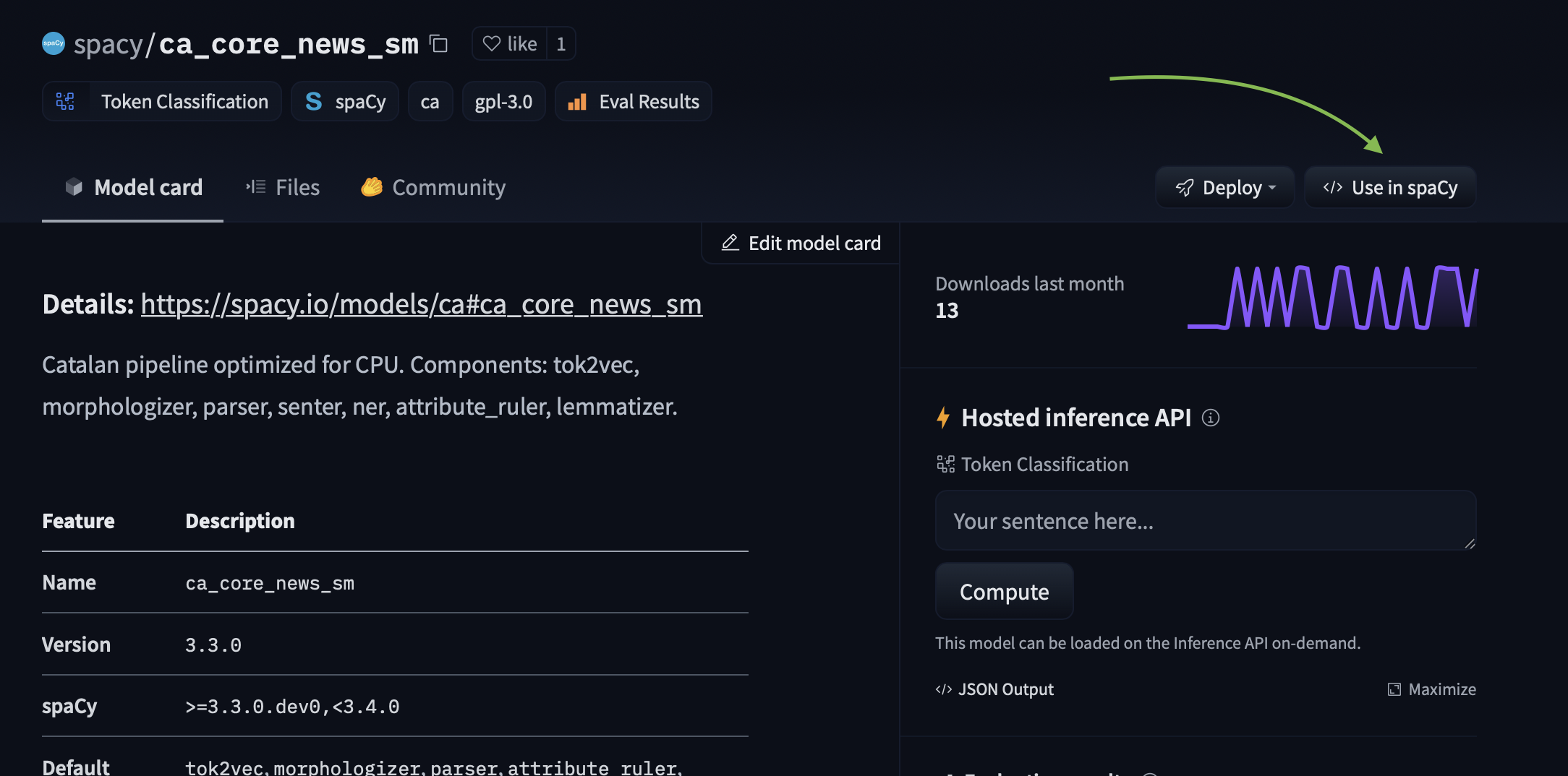 Exploring spaCy models in the Hub