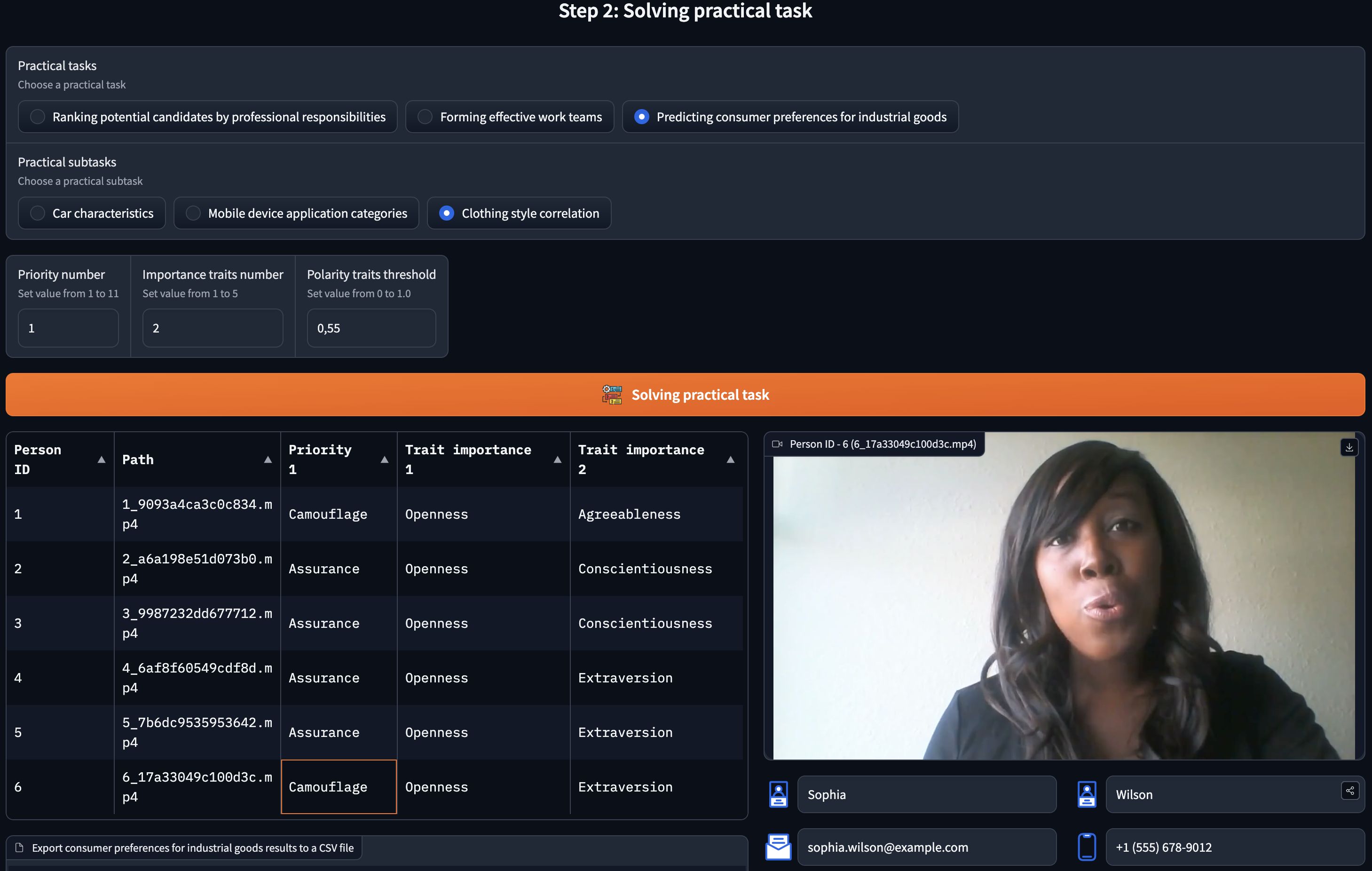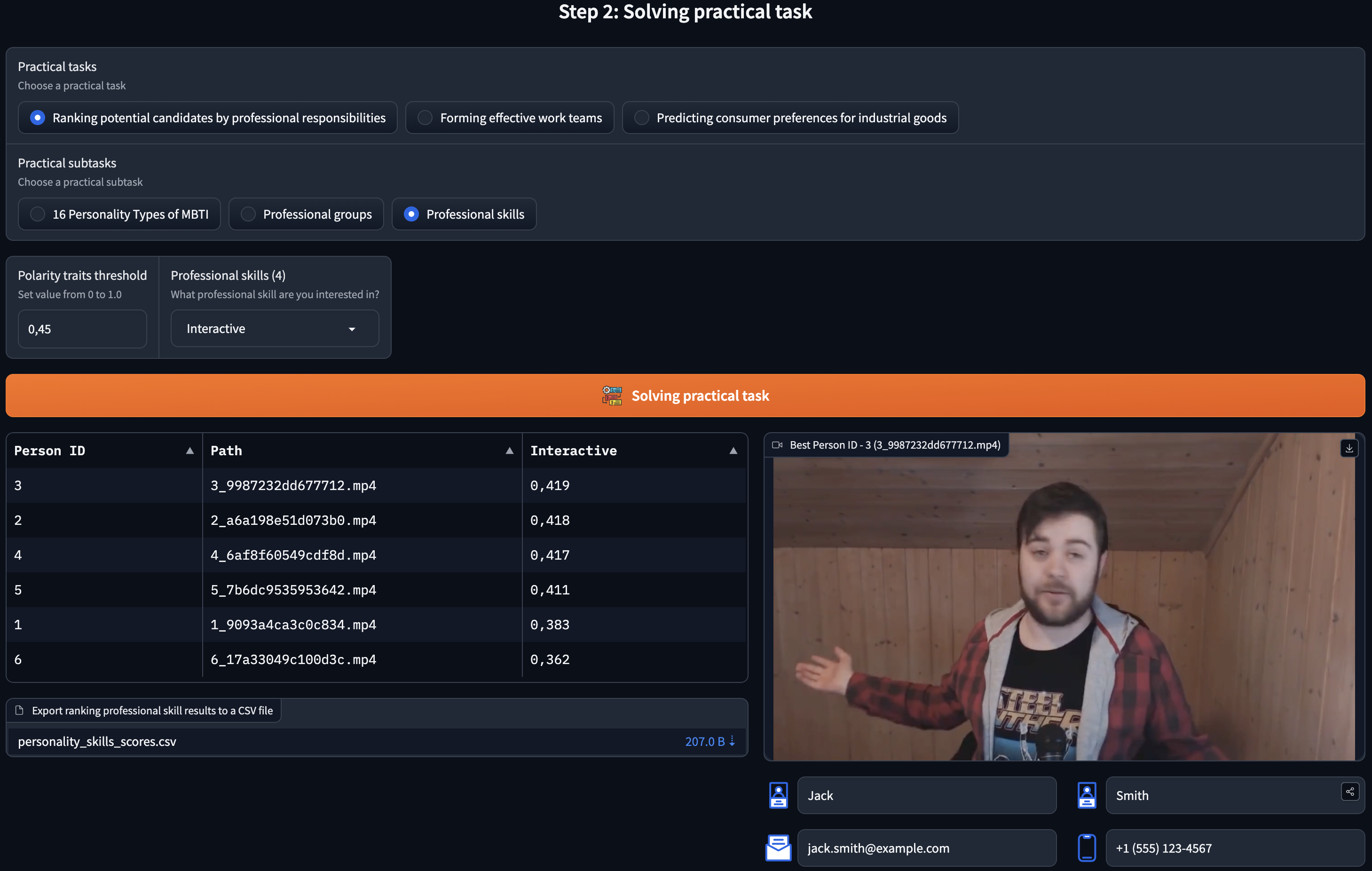 π Description: OCEAN-AI consists of a set of modules for intellectual analysis of human behavior based on multimodal data for automatic personality traits (PT) assessment. The app evaluates five PT: Openness to experience, Conscientiousness, Extraversion, Agreeableness, Non-Neuroticism.