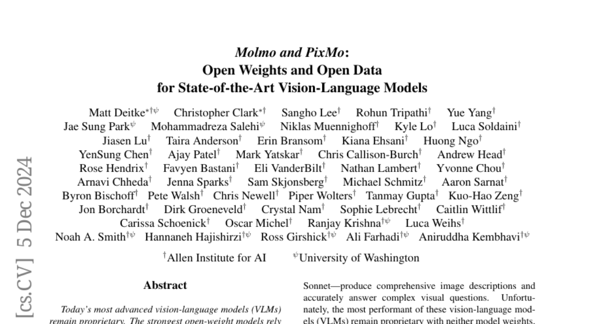 Molmo and PixMo: Open Weights and Open Data for State-of-the-Art Multimodal Models